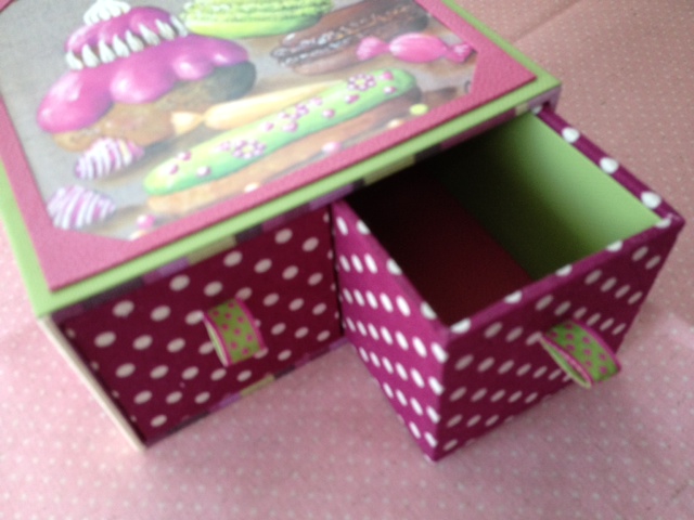 パリで購入したマカロンのカードを使って引き出しを作ります。